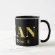 Snyggt kaffet mugg har Milanos stad, Italiens latitud- och longitud-karta-koordinater i guld typsnitt på svart bakgrund.