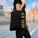 Lux-glasets trikå har Milanos stad, Italiens latitud- och longitud-karta-koordinater i guld typsnitt mot svart bakgrund. *design skrivs ut lodrätt