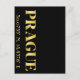 Med vykort visas koordinaterna Prag, Tjeckien, latitud och longitud karta, vertikalt i guld typsnitt på svart bakgrund.