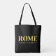 Lux tote-väskan har koordinaterna Rom, Italien latitud och longitud karta i guld typsnitt mot svart bakgrund.