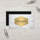 Ett faux metallic guld hexagon presenter, ditt namn eller företaget namn i en modern typografisk behandling. Sätt på en vit marmorbakgrund för ett upphöjt, luxt utseende och känsla. © 1201AM-KREATIV