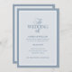 Simplify your wedding planning with this elegant all-in-one dusty blue invitation featuring a built-in QR code for easy RSVPs. These elegant, luxe wedding invitations feature a dusty blue border and a lighter blue and white design. There is a mix of classic text and modern calligraphy for a classy and minimalist design perfect for your timeless, formal wedding. The scannable QR code and sleek layout make it both practical and sophisticated, and the space for wedding details on the back eliminates the need for a separate card and helps keep your wedding budget in check.