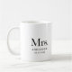 Den här eleganten säger minimalisten svart och vitt mugg "Mrs" i ett modernt lyxteckensnitt med hög mode och har också en plats för ditt efternamn och datum i bröllop.