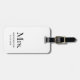 Den här eleganten säger den minimalistiska smekmånadens bagagemärke "Mrs" i ett modernt lyxteckensnitt med hög mode i svart och vitt, och har också en plats för ditt efternamn och datum i bröllop.