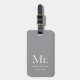 Den här eleganten säger den minimalistiska smekmånadens bagagemärke för mistern "Mr" i ett vitt, modernt lyxteckensnitt med hög mode på grått, och har också en plats för ditt efternamn och datum i bröllop.