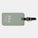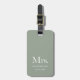 Den här eleganten säger den minimalistiska smekmånadens bagagetong "Mrs" i ett vitt, modernt lyxteckensnitt med hög mode på sage grönt och har även en plats för ditt efternamn och datum i bröllop.