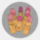 En samling söt läppsticks mot en stiliserad kyss mönster.