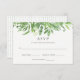 Det här responskortet för trendig och snyggt bröllop har moderna löv för grönt av vattenfärger.