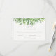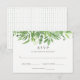 Det här responskortet för trendig och snyggt bröllop har moderna löv för grönt av vattenfärger.