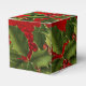 Luxe Red Foil, Grönt Holly, Red Berries Favor Box Presentaskar