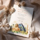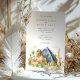 Förhindra en oförglömlig resa med den här speciella bröllopsinbjudan, med en skarp vattenfärgsbeskrivning av den ikoniska Luxor Hotel & Casino i Las Vegas. I teckningen fångas den stora sfinxen, den stora pyramiden och den namnteckning trojkan upp på ett mjukt himmel. Lush grönt träd och stiliserad guldfjäder av gult ram, utgiven i en mjuk, som inbjuder till vattenfärg stil som framkallar öknens värme. På presenterna på framsidan finns mer information om bröllop med elegant typografi, medan den omvända sidan innehåller "Finer Details" (Finer-information) för ytterligare gästinformation. Den här inbjudan är perfekt för ett unikt destinationsbröllop, ett Las Vegas firande eller par som söker en aning exotiskt flair. I paletten färg ingår sandiga gulter, rik, pyramidens djupblåa blått, de verdanta gröntarna i handflatan träd och vidrörningar av guld, rött och blått på Sphinx.
