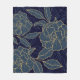 Elegant Luxurit Blue Navy Guld Flower Fleece Blanket