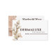 Visa ditt skönhetsmärke hälsa med elegantens botaniska affärskort. Framsidan har logotypen Dermaluxe Therapy som är uppbyggd av mjuka beige marmortoner och delikata illustrationer i löv för en naturlig men lyxig känsla. I baksidan finns namn, titel, kontaktinformation, webbplats och medieikoner i social, som är accentuerade av bilder med god blommigt. Perfekt för skönhetsterapeuter, spaägare, skinkspecialister eller holistiska professioneller i hälsa som vill ha en förfinad bild av professionellen. Fullt anpassade med ditt eget namn, logotyp och varumärke färg.