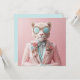 En vit leopard i snyggt med extravagant rosa kostym försedd med juveler, blommigt och elegant. Kattdjuret sporterar diamantstuderade runda solglasögon och pastellskål, med undantag för sofistikering och glamor.