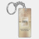 En digital faux guld shimmer-folie har en gyllene kvadratisk form av geometriskt ram som är kantad med vitt på den och som vilar mot en vibrerande faux-antik krossad guld mönster på den övre halvan. Det finns mallar på baksidan för information och kontaktnummer till dina anläggningar. Denna nyckelring är idealisk för dyra, lyxfyllda och sofistikerade hotell-, resorts-, butikhotell- och sänganläggningar och frukostanläggningar. De svarta textmallarna kan vara personliger eller borttagna.