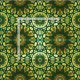 Sömlös dekorativ mönster med gult övertoningsdekorationer på gröntens bakgrund.