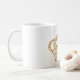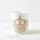 Luxuriöst vitt kaffe mugg i guld krona.