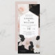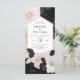 Elegant Chanel-inspirerad bröllopsinbjudan med rosa simulerade smyckade blommor och löv med chicens svarta accenter. Skapar en blandning av sofistikering, lyx och romantik.
