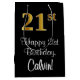 Den här eleganten, den lyxiga och snyggt presentsäcksdesignen har ett stort ordnummer "21st" som har ett utseende som präglas av faux/imitation guld, tillsammans med hälsning-födelsedagsmeddelandet "Lycklig 21st Birthday" och en redigerbar mottagare namn i ett skript-stil-teckensnitt. Den har också en bakgrund med svart färgad. En elegant presentsäck som denna kan vara ett roligt sätt att fylla på en födelsedagspresent eller gåva som ges till någon som firar sin 21:a födelsedag. [~Z0000514]