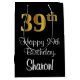 Den här sofistikerade, lyxaktiga och elegant-matade presentsäcksdesignen har ett stort ordnummer "39:e" med ett imitation/faux-guld-inspirerat utseende, tillsammans med hälsning-födelsedagstecknet "Lycklig 39:e födelsedagen" och en anpassningsbar mottagare namn i ett skript-stil-teckensnitt. Bakgrunden är svart på färgad. En sådan här presentpåse på snyggtens födelsedag kan vara ett roligt sätt att figurera en gåva eller present som ges för att fira någons trettionionde födelsedag. [~Z0000514]
