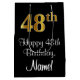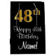 Den här sofistikerade, lyxaktiga och snyggt presentsäcksdesignen har ett stort ordnummer "48:e" med ett imitation/faux-guld-inspirerat utseende, plus hälsning-födelsedagsmeddelandet "Lycklig 48:e födelsedag" och en redigerbar mottagare namn i ett stift-stil. Den har också en bakgrund med svart färgad. En sådan här elegant kan användas när en gåva eller present är ge för att hedra någons 48-årsdag. [~Z0000514]