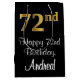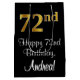 Den här snyggten, sofistikerad och elegantens matade presentsäck har ett stort ordnummer "72:a" med ett imitation/faux guld-inspirerat övertoningsformat mönster, plus hälsning-födelsedagsmeddelandet "Lycklig 72:a födelsedag" och en anpassningsbar mottagare namn i ett skript-stil-teckensnitt. Den har också en bakgrund med svart färgad. En lyxig födelsedagsäck med den här presentpåsen kan användas när en gåva eller present i firande på någons 72-årsdag är ge. [~Z0000514]