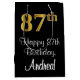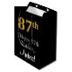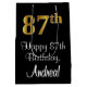 Den här sofistikerade, elegant- och lyxiga presentsäcksdesignen med födelsedagstext har ett stort ordnummer "87:e" som har en imitation/faux-guld-inspirerad övertoning mönster, tillsammans med hälsning-födelsedagstexten "Lycklig 87:e födelsedagen" och en personlig mottagare namn i ett skript-stil-teckensnitt. Bakgrunden är svart på färgad. En presentpåse som denna kan vara ett roligt sätt att fylla på en födelsedagspresent eller gåva som ges till någon som firar sin åttio sjunde födelsedag. [~Z0000514]