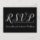 Denna lyxiga och glamorösa R.S.V.P.-vykortsdesign innehåller meddelandet "R.S.V.P." på framsidan, tillsammans med en beskrivning av anpassadet/tillfälle. Den innehåller också ett formulär för OSA av anpassningsbar på baksidan som mottagaren kan fylla i, tillsammans med en anpassningsbar adress som den ifyllda OSA kort skulle skickas till. OSA kort som detta skulle kanske kunna användas för att ta reda på vem som kommer att närvara vid en middag party, vid en jul party, vid en födelsedagsfest eller vid något annat evenemang.