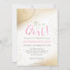 Vacker guld och rosa babyduschinbjudan.