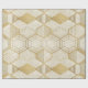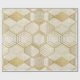 A sophisticated seamless geometric pattern wrapping paper featuring a grid of interlocking hexagons outlined in metallic gold. Each hexagon contains elegant linework and subtle geometric details, set against a softly textured cream and beige marble background. The blend of warm neutrals and gold accents gives this design a modern, refined, and luxurious feel.