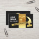 Ett grått-mörk-hölje har en guld rand med underliggande taktopp. Framför detta står en hammare i guld som har ditt prestigefyllda namn invändigt. Över i det övre hörnet ljuger ditt företag namn och den mobila kontakten. I ett grått-hölje i mörk finns en logotyp i guld som du kan använda på högst upp. Detta följs av ditt namn, kontaktuppgifter och ett sloganalternativ för att publicera dina tjänster. En underbar utformning för teman för handyman, byggnad och konstruktion.