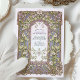 Den här breande bröllopsinbjudan till Art nouveau har en krånglig blommigt och ram med guld som inspirerats av klassisk dekorativ konst. Den botaniska utformningen omfattar känsliga vita blommor, blommar för pastelliserad rosa och elegant grönt bladverk som är sammanflätade med guldfiligree och skapar ett bedövande, tidlöst estetiskt bedövningsmedel. Bakgrunden av mjukt lavender-grått förstärker det romantiska känslan, medan baksidan visar ett matchande monogramemblem med konstnärligt blommigt inslag. Perfekt för vintage-temat bröllop, trädgårdsodling firande eller par som kärlek för Art nouveau sofistikering. Anpassa den här inbjudan om du vill skapa ett oförglömligt bröllop-meddelande.