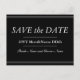 På framsidan av denna lyxiga och elegant spara-the-date-vykort finns meddelandet "SPARA DATE", tillsammans med redigerbart namn och ett datum. Sådana vykort skulle kunna användas för att meddela eventuella gäster om ett kommande bröllop firande eller något annat evenemang.