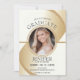 Denna inbjudan till födelsedag och studenten erbjuder en lyxig, mousserande skönhet med charmerande guld-toner och ett unikt mousserande mönster. Mottagarens bild av porträtt är en cirkel som skapar en framträdande och attraktiv högdager. Detaljerad information om evenemangen presenteras tydligt, vilket gör det lättare för gästerna att ta sig an innehåll.