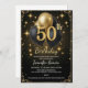 Luxury 50th Birthday Black Gold Balloon Glitter Inbjudningar
