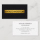 Elevate your first impression with this sophisticated black faux leather business card. The front's subtle leather-like texture adds depth and premium feel, highlighted by a prominent gold metallic bar for your name. The reverse side presents phone, address, socials, email, and website in a crisp, professional layout. Perfect for real estate agents, designers, decorators, consultants, or anyone who values upscale, tactile design. Customizable and memorable — luxury that feels personal and inviting.