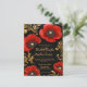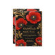 This luxury black, red, and gold floral wedding invitation features an opulent botanical design with rich red poppy-style flowers and elegant gold baroque accents on a deep black background. The dramatic contrast and refined ornamental details create a sophisticated and timeless aesthetic, perfect for formal and upscale weddings.