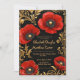 This luxury black, red, and gold floral wedding invitation features an opulent botanical design with rich red poppy-style flowers and elegant gold baroque accents on a deep black background. The dramatic contrast and refined ornamental details create a sophisticated and timeless aesthetic, perfect for formal and upscale weddings.