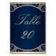 Lägg till de här Bordsnumren i elegant bröllop till dina mottagartillbehör. Designad med en marin bakgrund, guld färgad trim och bokstäver för lyxens utseende. Om du vill lägga till Bordsnumren infogar du bara ett nummer (per beställt kort) i vår enkla mall och ersätter exempelnumret (20). Numret upprepas automatiskt på baksidan. Se till att du har en komplett "Luxury Blue Bröllop Stationery Collection" för matchning av delara.