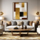 En geometrisk sammansättning av gyllene och bruna kuber som passar perfekt ihop. Den minimalistiska konsten och eleganten avspeglar rikedom och sofistikering, skapar den en perfekt biet för konst för moderna miljöer.