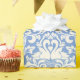 Den här eleganten har ett klassiskt lyxdammmönster med två romantiska svanar runt ett kärlek hjärta i vitt på en blå bakgrund #romantiskt #damask #bröllop #kärlek #victorian #luxury #decor #bröllop #adapterpapper #klingpålägg #klingsembrap #klingpåslag #party #partyanslag #designer #design