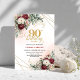 Luxury Deep Red Floral Gold 90th Birthday Invite Inbjudningar