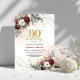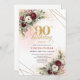 Luxury Deep Red Floral Gold 90th Birthday Invite Inbjudningar