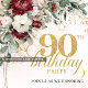 Celebrate an unforgettable milestone with this 90th birthday invitation, beautifully designed in a boho and bohemian style featuring soft watercolor blush and burgundy florals accented by an elegant gold frame. This refined design combines warmth, sophistication, and timeless charm—perfect for honoring a very special occasion.