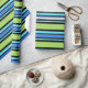 Ett lyxglas Pappert, med en "rullstol" strimlade mönster i ljusblå, neonfärgad grönt och svart. En del av Posh & Painterly 'Blue Måne Samling; från en handmålad papper kollageutformning av Judy Adamson.