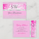 Luxury Girly Rosa Glitter Monogram Silver Gräns Visitkort