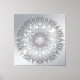 Elegant och moderiktig utdragen kanvastryck med en glansig silver-metallfiligree blommigt mandala med silver som bakgrund.