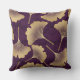 This elegant pattern throw pillow features flowing gold ginkgo leaves delicately layered over a rich purple background, creating a sophisticated balance of nature and luxury. The fine line-art detailing and metallic gold effect add depth and refinement.