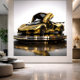 Step into the future of automotive excellence with this stunning luxury gold hypercar design, captured in a sleek, high-end studio setting. Featuring a futuristic supercar with ultra-reflective gold bodywork, sharp aerodynamic lines, and dramatic open doors, this artwork embodies speed, power and elite design innovation.
