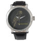 Elevate your personal style with this exclusive wristwatch from the BarberArtDesign "Rare Species" Collection. This timepiece is not just a watch; it’s a statement of sophistication. It features a meticulously detailed golden line-art Macaw parrot, symbolizing freedom and rare beauty, set against a backdrop of premium dark obsidian marble with subtle gold veins.